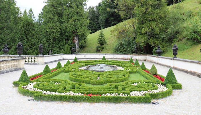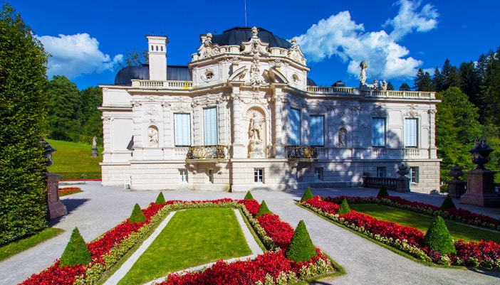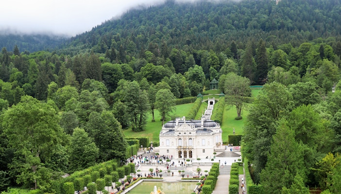 - Luxuriöse Innenausstattung: Linderhof mag als kleiner, privater Rückzugsort erbaut worden sein, aber das Schloss ist genauso großartig und opulent wie die anderen königlichen Schlösser Bayerns. Halten Sie Ausschau nach dem Spiegelsaal und den vergoldeten Möbeln, die den extravaganten Stil des Rokoko widerspiegeln.